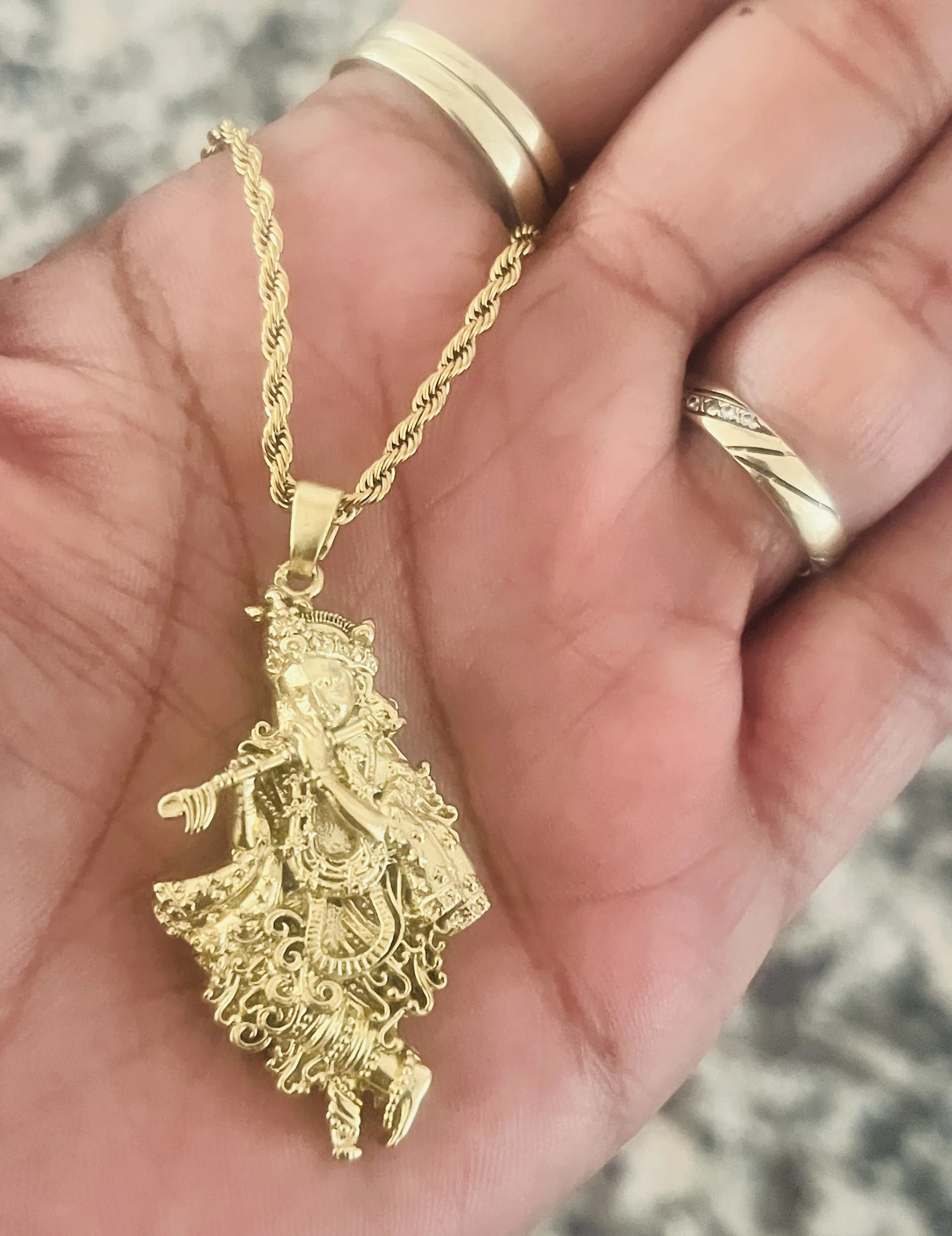 - Ons eigen ontworpen krishna hanger in Goud kleur met een roestvrijstalen ketting!!