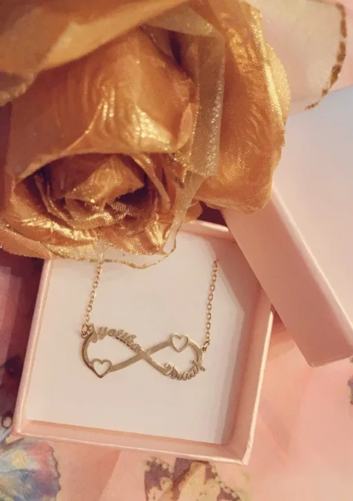 Deze mooie Infinity Nederlandse naamketting is roestvrijstaal. En is verkrijgbaar in 3 lengtes (40-45-50 cm) In de kleuren zilver/rosé/goud.